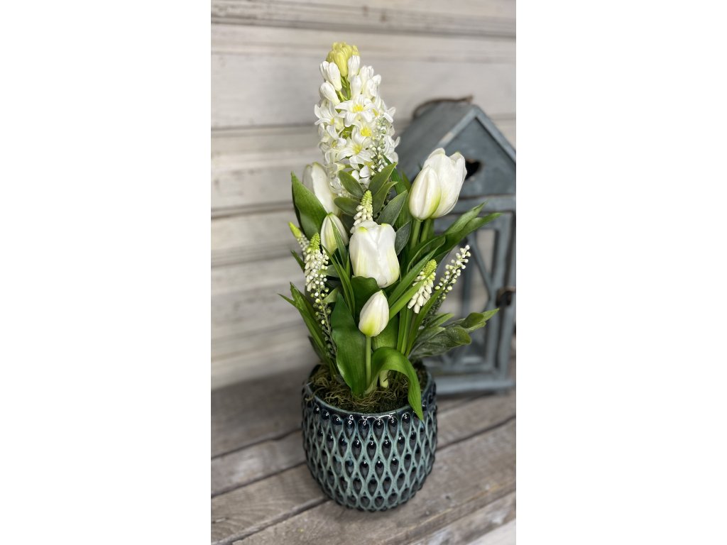 Jácint tulival kék kaspóban